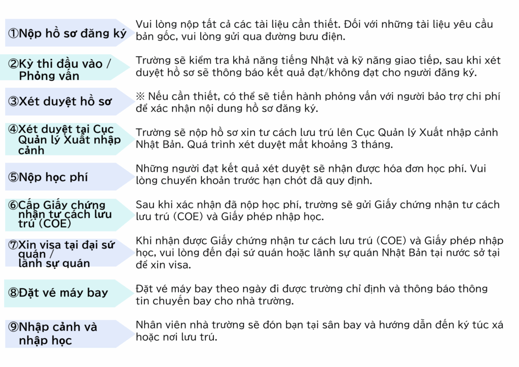 ① 〈Xét hồ sơ〉 Xét nội dung hồ sơ đăng ký, xác nhận nguyện vọng du học, mục đích, trình độ học vấn, tình hình kinh tế, v.v.