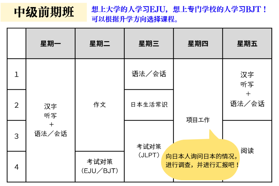 (※ 根据新入学者的日语水平,决定是上午班还是下午班。)